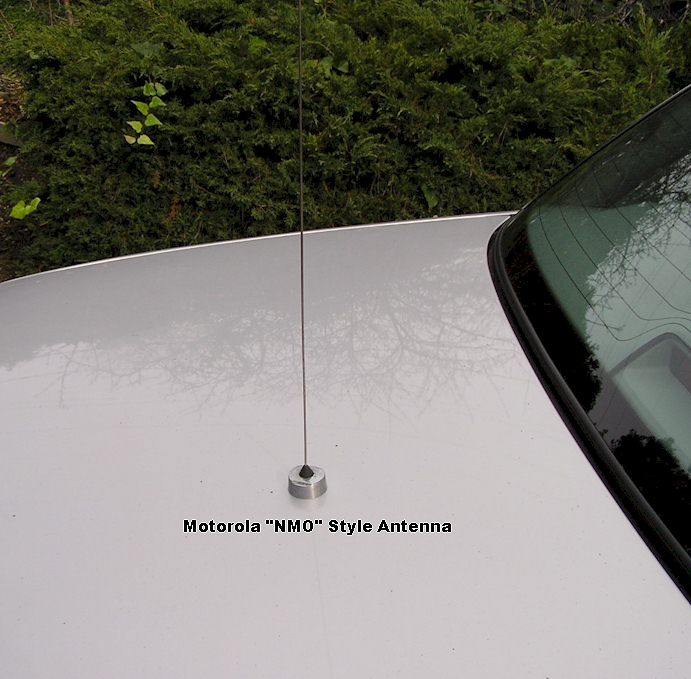 The NMO series antenna began to be shipped by Motorola in late 1968. It is designed to mount in a 3/4" hole and theoretically does not require removal of the auto headliner during installation. It is still the current VHF high band antenna supplied with Motorola radio equipment. UHF versions use a 6 inch whip but are otherwise identical.